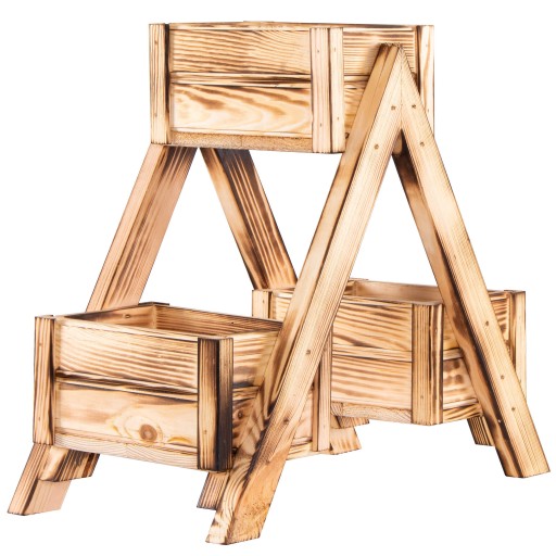 STOJAK NA KWIATY KWIETNIK DREWNIANY OPALANY OGRÓD