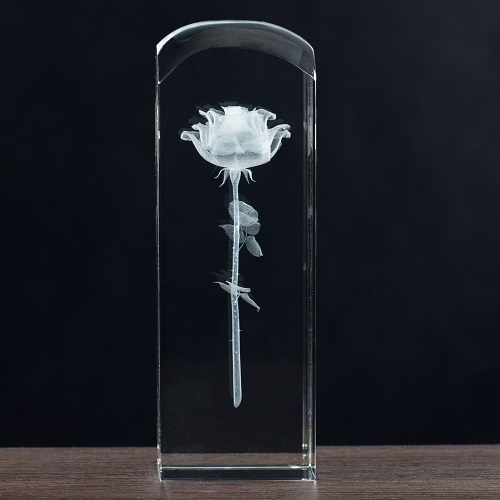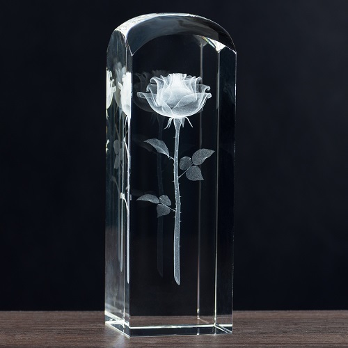 Trójwymiarowa róża wygrawerowana w okazałej kryształowej statuetce, którą możesz opatrzeć Twoją własną dedykacją, dzięki czemu prezent nabierze osobistego wymiaru. Statuetka może być oryginalnym prezentem na różne okazje jak rocznica ślubu, walentynki czy urodziny.