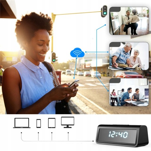UKRYTA KAMERA WI-FI ZEGAREK SZPIEG SZPIEGOWSKI NAGRYWANIE NOCNE TUYA APP