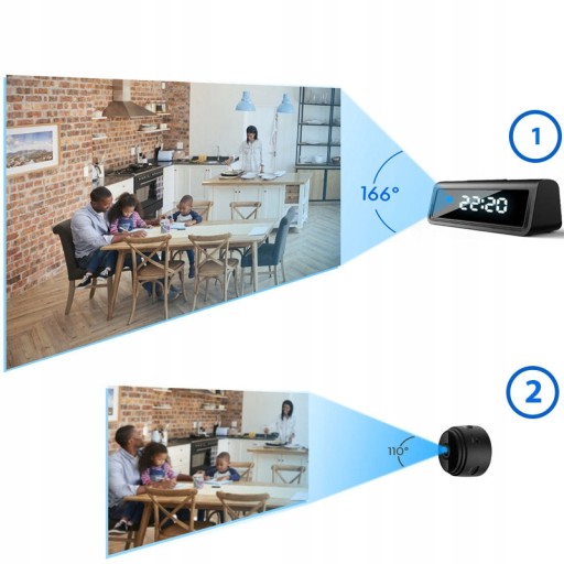 Kąt nagrywania to aż 166 stopni, dzięki jednej kamerze zarejestrujesz jeszcze większy obszar. W przeciwieństwie do kamer których kąt nagrywania wynosi 110 stopni - zobacz różnicę: