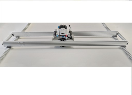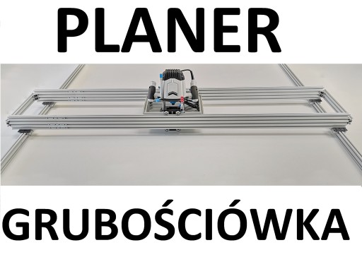 Wersja budżetowa do zastosowań amatorskich. Na pozostałych naszych aukcjach znajdują się złożone planery z wzmocnioną konstrukcją oraz dodatkową stabilizacją wózka frezarki w wersji V1 (na pojedynczym profilu) oraz V2 (wzmocniony profil "C" przystosowany do montażu automatyki)