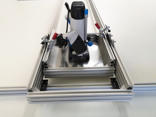 Dzięki zastosowaniu wzmocnionych profili konstrukcyjnych jest stabilny, nie drga podczas pracy i nie „siada” pod ciężarem frezarki.