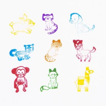 Stempelki w nowych, ciekawych wzorach ze zwierzątkami (pies, koń, lama, kot, szop, lis, tygrys, małpka, królik) udekorują każdy rysunek małego artysty. Stempelki są samotuszujące, więc nie wymagają używania dodatkowej poduszki z tuszem. Dzieci bardzo chętnie po nie sięgają i wykorzystują w różnorodnych twórczościach.