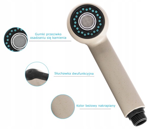 SŁUCHAWKA DO BATERII Z WYCIĄGANĄ WYLEWKA BEŻOWA