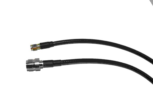 Kabel gniazdo N / wtyk SMA, przewód RG58 linka 50ohm. Na zdjęciu użyte złącza. Wtyk SMA z pinem w środku, a gniazdo N z rurką w środku.