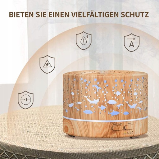 Dyfuzor zapachowy MEIDI 500 ml, ultradźwiękowa lampa zapachowa elektryczna, drewniana konstrukcja bez BPA z 7-kolorowym nawilżaczem do olejków eterycznych, dziecka, pokoju dziecięcego, jogi, spa, sypialni