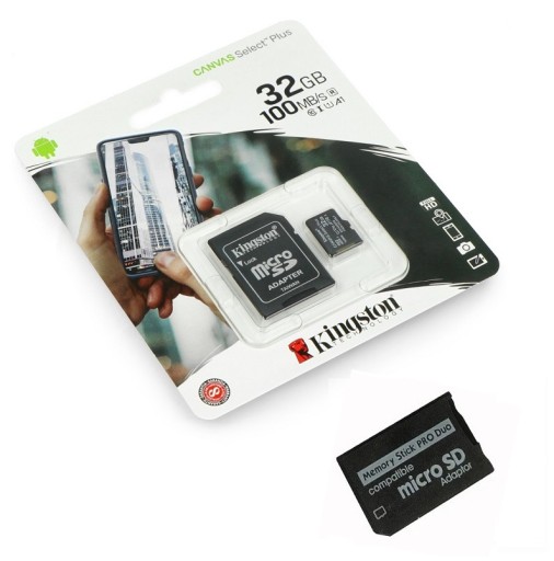 Oryginalna karta pamięci KINGSTON 32GB microSDHC class 10 + adapter SD + adapter MS PRO DUO do konsoli PSP