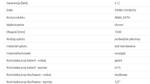 - wąż w oplocie do baterii z wyciąganą wylewką 150 cm