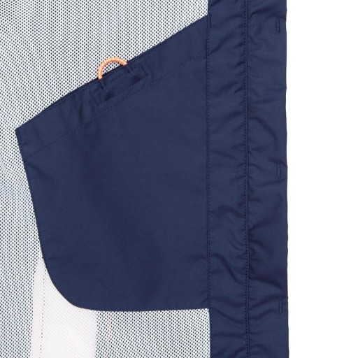 ODPORNOŚĆ NA WODĘ MORSKĄ: Kurtka jest odporna na wodę morską (powłoka kurtki zatrzymuje zjawisko utleniania, uszkadzające standardowe powłoki). Centralne zapięcie na suwak z wtryskiwanego plastiku jest również odporne na utlenianie powodowane przez sól.