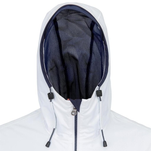 Hydrofobowa, wytrzymała kurtka o doskonałej relacji jakość/cena, idealna na deszcz jak i do okazjonalnego uprawiania żeglarstwa w deszczową i wietrzną pogodę, posiada uszczelnione wszystkie szwy oraz wodoodporną powłokę 2000 mm w skali SCHMERBERA (test natryskowy pod 100 litrami wody/m²/h przez 3 godziny - norma ISO 811). Wysoki kołnierz i kaptur z daszkiem i regulacją obwodu głowy i głębokości, zapewniają ochronę i komfort podczas złej pogody. Waga kurtki około 550 g w rozmiarze XL.