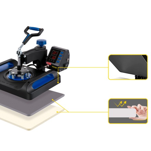 Wielorakie zastosowania: Prasa termiczna VEVOR 30x38cm jest wszechstronna i nadaje się do przenoszenia obrazów na T-shirty, bluzy, spodnie, poduszki, torby, podkładki i płytki ceramiczne. Idealne urządzenie dla majsterkowiczów lub właścicieli małych firm, którzy chcą realizować swoje artystyczne inspiracje i pomysły z życia codziennego.