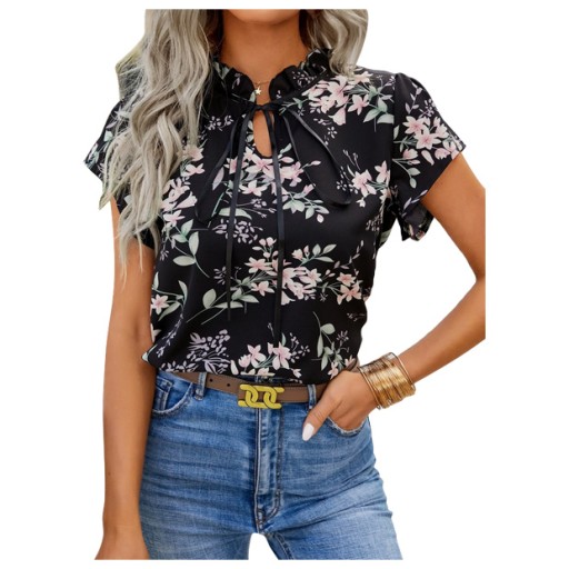 MODNA LETNIA BLUZKA KWIATY WIĄZANA KOSZULA