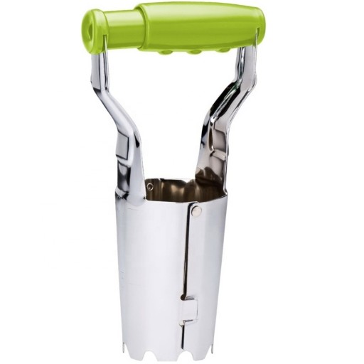 Narzędzie do sadzenia roślin cebulowych wykonane z wysokiej jakości stali, wyposażone w wygodny plastikowy uchwyt ułatwiający pracę.