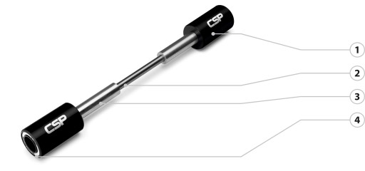 Crash pady CSP są wyposażone w oś łączącą, wyprodukowaną z pręta ciągnionego stali nierdzewnej, powierzchnia szlifowana lub matowa. Wykonane według niemieckich norm DIN 671 z tolerancją h9 i h20.