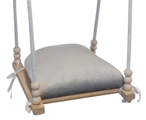 WYGODNA - Huśtawka uszyta z miękkiej i delikatnej w dotyku pikowanej tkaniny VELVET. Posiada wysoką odporność na mechacenie oraz płowienie koloru, co sprawia że tkanina na długo zachowa swoje walory estetyczne. Dodatkowym atutem materiału Velvet są właściwości Cleanaboo, które ograniczają wchłanianie rozlanych płynów. Rozlany płyn przyjmie formę kropli, które z łatwością usuniesz z tkaniny. Tkanina jest niezwykle elegancka i obecnie wyjątkowo modna. Podusia wypełniona jest hipoalergiczną włókniną silikonową, można bez trudu zdejmować i prać. Tkaniny, nici, wypełnienia posiadają certyfikat jakości OekoTex@standard.