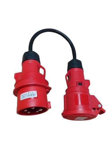 aukcja dotyczy się adaptera / redukcji z wtykiem 16A 5 pinów oraz gniazda 32A 4 piny oraz długość przewodu 0,5m i przekroju 5x2,5mm