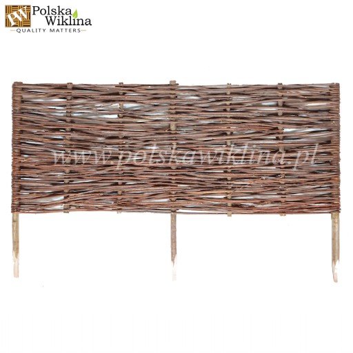 - Wykonanie: Płotek wiklinowy (inaczej palisada wiklinowa) wykonany jest ręcznie z drewnianych kołków oraz z najwyższej jakości naturalnej, polskiej wikliny, która jest nieokorowana, dzięki czemu uzyskujemy ciemny kolor.
