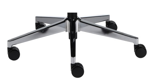 Stalowa, chromowana podstawa jezdna wyposażona jest w estetyczne kółka miękkie o wysokości 60 mm. Są bezpieczne dla parkietów, paneli i terakoty. Bardzo dobrze sprawdzą się także na dywanach i wykładzinach.