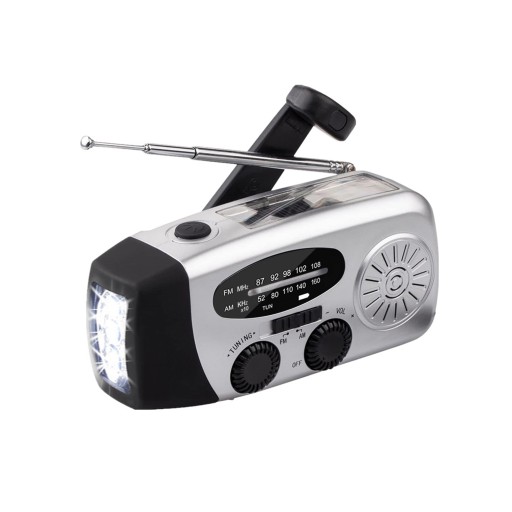 Wiele metod zasilania: radio może być zasilane energią słoneczną, ładowaniem USB i korbą ręczną do ręcznego generowania energii.