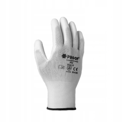Rękawice, rękawiczki robocze, powlekane poliuretanem, białe PROOF rozmiar 9-L - 10 par