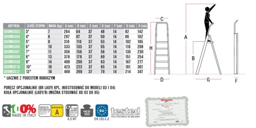 - Wygodna i bezpieczna platforma dzięki stopniom o szerokości 13 cm. Stopnie montowane są w technologii lotniczej co gwarantuje trwałość i bezpieczeństwo.