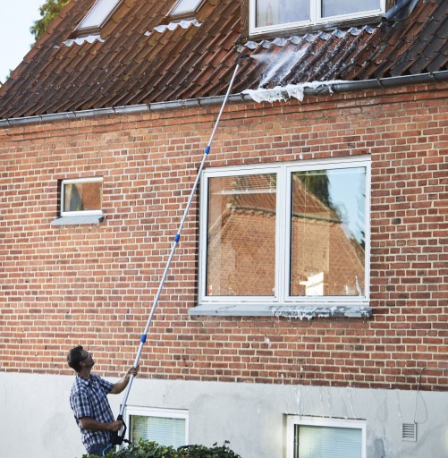 Dzięki temu skutecznie pozbędziesz się bakterii i innych zanieczyszczeń mających negatywny wpływ na pokrycie dachowe, bez obawy, że spadniesz z wysokości.
