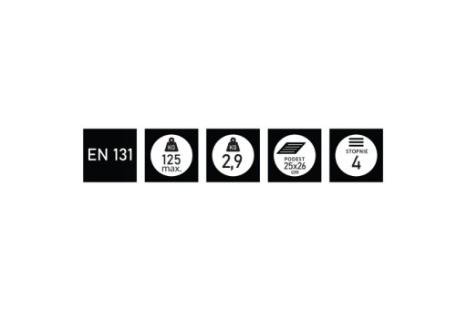 Wersja o wytrzymałości 150 kg odpowiada standardom wytrzymałościowym przy intensywnej pracy, określonych w normie EN 131.
