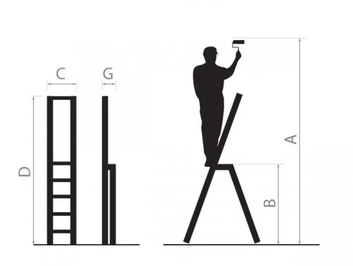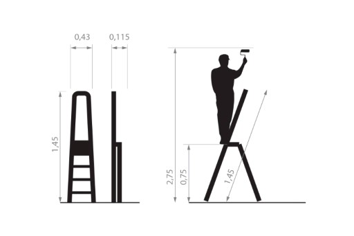 - Wymiary drabiny złożonej [mm]: 1450 x 430 x 115