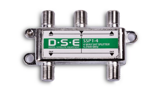 Rozgałęźnik umożliwiający rozdzielenie jednego sygnału na cztery odbiorniki. 4-krotny, satelitarny DSE serii SSP. Pracuje w pasmach 5-2400 MHz. Przepuszcza napięcie.