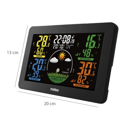 - Bezprzewodowy pomiar temperatury wewnętrznej i zewnętrznej, aż na 3 czujnikach