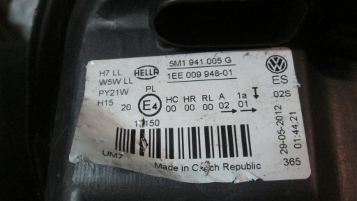 Przedmiotem aukcji jest LAMPA REFLEKTOR LEWY EUROPA ORYGINAŁ VW GOLF VI 6 PLUS