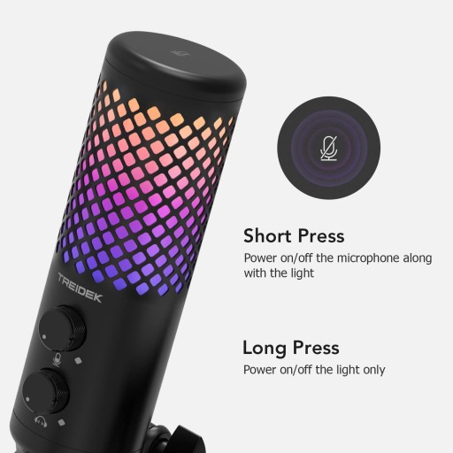 Zaprojektowany z dynamicznymi tęczowymi światłami RGB, które automatycznie zmieniają się podczas gry lub nagrywania. Wbudowany wielofunkcyjny przycisk wyciszania, który może oddzielnie kontrolować stan mikrofonu i świateł RGB. Krótkie naciśnięcie włącza/wyłącza mikrofon wraz ze światłami RGB, długie naciśnięcie włącza/wyłącza tylko światła RGB. Nigdy więcej nie przejmuj się światłami, jeśli ich nie potrzebujesz.