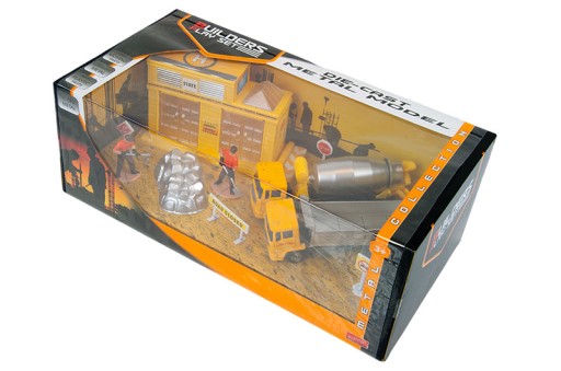 - Duża wywrotka i betoniarka "gruszka" do zabawy ciężkimi samochodami ciężarowymi.