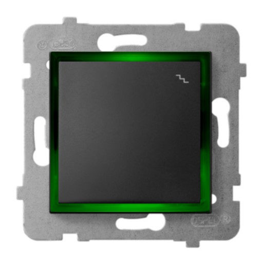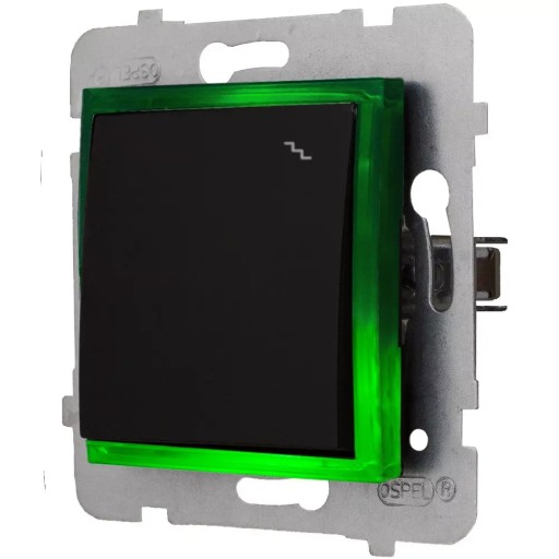 Włącznik Ospel Aria z podświetleniem Led. Podświetlenie w formie diody montowanej pod klawiszem z przezroczystą ramką otaczającą klawisz. W jasno oświetlonych pomieszczeniach dioda jest ledwo widoczna a po zmroku zapewnia niesamowity efekt. Po włączeniu oświetlenia żarówka gaśnie. Lampa, która jest zapalana włącznikiem może wymagać zamontowania kondensatora w przypadku gdy żarówka lampy będzie delikatnie świecić - takie zjawisko może wystąpić w niektórych lampach led lub żarówkach led.