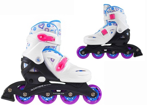 NJ0321A Nils Extreme to łyżworolki przeznaczone dla najmłodszych i nie tylko pasjonatów jazdy. Produkt jest połączeniem klasycznego wzornictwa z wysoką jakością wykonania. Oddychająca membrana gwarantują komfort podczas jazdy. Łyżworolka wyposażona jest w specjalną płozę (PP) polipropyleny, dzięki której płozy są lekkie oraz bardziej elastyczne i komfortowe. Ze względu ma lepsze właściowości absorpcyjne drgań, zdecydowanie polecane są dla dzieci. Z kolei kółka 64mm oraz łożyska klasy 608Z pozwalają na mniejsze opory toczenia, czyli szybszą jazdę. Za pomocą prostego systemu regulacji można łatwo i szybko dopasować rozmiar do stopy użytkownika. Takie rozwiązanie pozwala na przedłużenie ich żywotności, daje też możliwość korzystania z nich więcej niż jednej osobie. Lekki i wytrzymały but wraz z klamrą dwusekcyjną zapewnia maksymalne bezpieczeństwo.