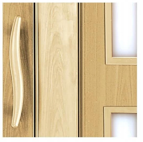 Zastosowane przeszklone, komorowe panele drzwiowe posiadają matową strukturę drewna , połączone za pomocą elastycznych (gumowych) zawiasów.
