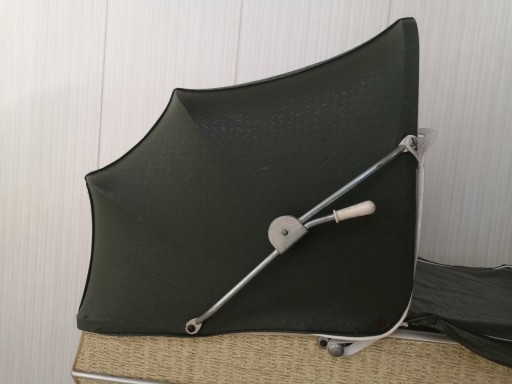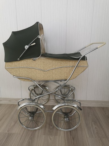 stan całego wózka widoczny na zdjęciach - w zakamarkach nalot, górna osłonka była złożona przez co powstały zagniecenia, nici na osłonce do poprawy, szybka była wymieniona, całość gondoli była czyszczona i to co widać teraz na fakturze wózka było kolorem oryginalnym imitującym rattan, budka wózka skaj
