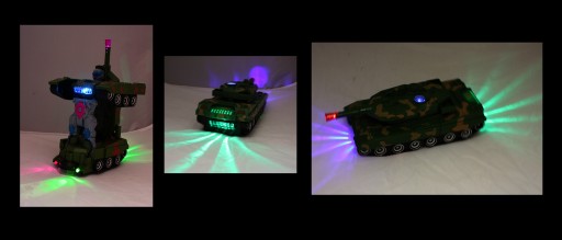 Czołg wojskowy z atrakcyjnym dźwiękiem wraz osłoną świateł to alternatywa na zabawę , czołg przekształca się w wojownika który pokazuje jeszcze większą moc tego pojazdu.