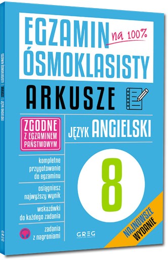 Ósmoklasista znajdzie tutaj wszystkie typy zadań, jakie pojawiają się na egzaminie - zadania sprawdzające rozumienie ze słuchu razem z nagraniami oraz zadania z zakresu rozumienia tekstu pisanego, zadania testujące umiejętności językowe, znajomość słownictwa, a także tworzenie krótkich wypowiedzi pisemnych.