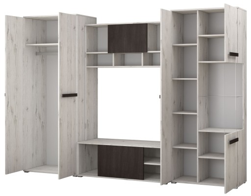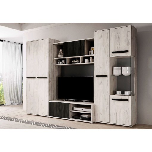 Meblościanka TINA - DĄB CRAFT BIAŁY (WSTAWKA SOSNA CZARNA)