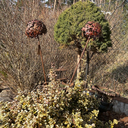 Ta brązowa dekoracja ogrodowa jest wykonana z trwałego metalu, który gwarantuje długą żywotność i odporność na warunki atmosferyczne. Jego wysoka jakość sprawi, że będziesz cieszyć się nią przez wiele lat.