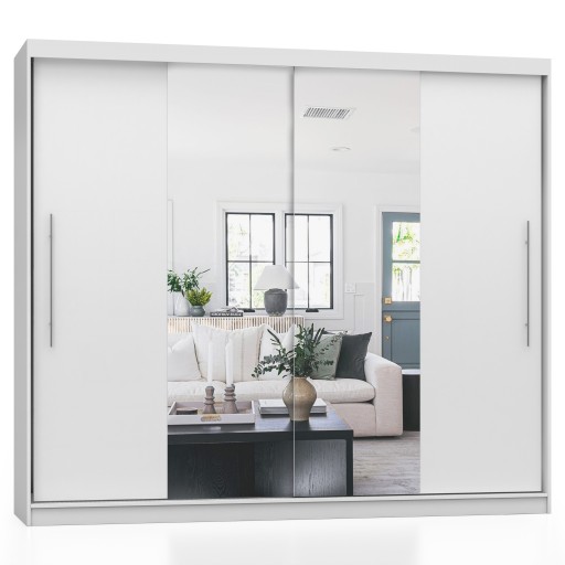 W szafie zastosowano wysokiej jakości system drzwi przesuwnych w postaci rolek na łożyskach, dzięki którym drzwi płynnie i lekko przesuwają się po metalowych prowadnicach.