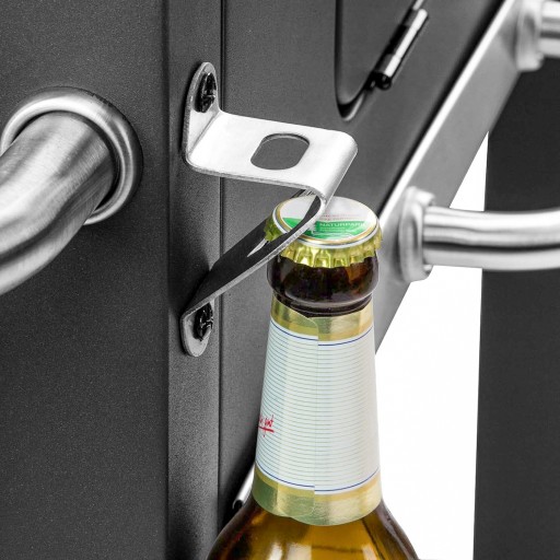 Na obudowanie grilla znajduje się przymocowany otwieracz do butelek, który służy pomocą przy gaszeniu pragnienia.