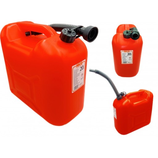 Kanister plastikowy wykonany z najwyższej jakości materiałów. Wyposażony w elastyczny giętki lejek oraz korek ze szczelną uszczelką przymocowany na pasku. Kanister jest przeznaczony do przechowywania oraz transportu benzyny, ropy i olejów. Kanister posiada wytłoczony na boku certyfikat.