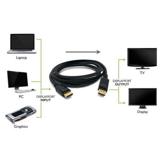 Wysokiej jakości kabel umożliwia podłączenie komputera, laptopa, dekodera oraz pozostałych urządzeń wyposażonych w złącze DisplayPort do telewizorów, monitorów oraz pozostałych urządzeń wyposażonych w złącze DisplayPort. Kable są ekranowane, dzięki czemu zapewniają najwyższej jakości obraz i dźwięk bez zakłóceń. Zatrzaski na obu końcówkach zapobiegające wypadaniu kabla ze złącz. Nie wymaga żadnych sterowników - Plug and Play.