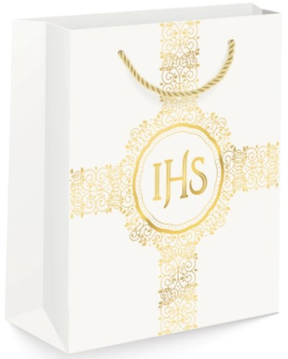 БЕЛАЯ СУМКА ДЛЯ ПОДАРКОВ СВЯТОЕ ПРИЧАСТЬЕ IHS 20 СМ