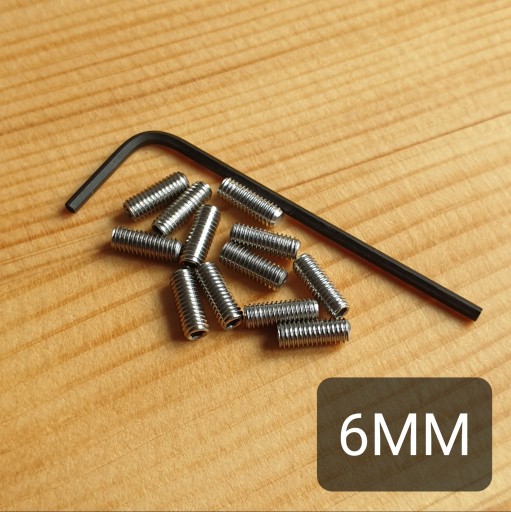Prezentuję Państwu komplet 12 śrub o długości 6mm oraz srednicy 3mm pasujący do większości mostków produkcji azjatyckiej. Śruby pozwalają na maksymalne obniżenie akcji strun gdyż w całości kryją się w siodełku mostka. W skład zestawu wchodzi klucz imbusowy który pozwoli natychmiast rozprawić się z tym niestety dość częstym problemem.