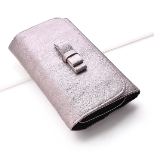 Eleganckie etui w kolorze metalicznego brudnego różu wykonane zostało z ekologicznej skóry syntetycznej PU, która charakteryzuje się wysoką odpornością na zużycie oraz na działanie wody. Materiał jest miękki i bardzo przyjemny w dotyku. Etui wyposażone jest w 12 kieszonek na pędzle o różnej grubości trzonka. Posiada zakładkę ochronną na włosie oraz bardzo wygodne zapięcie magnetyczne, ozdobiona uroczą kokardą.