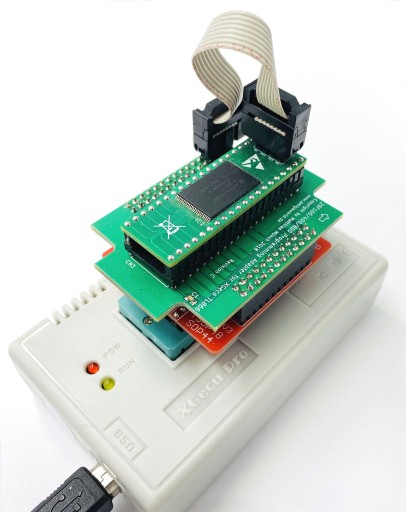 - Wyprowadzenia: PDIP 40 -pin + 2x4IDC --> Gniazdo IDC 2x24-pin dedykowane tylko dla adaptera pośredniego SN001-1 programatora rodziny MiniPRO (TL866CS/TL866A) oraz XGecu TL866II Plus i pamięci flash29F400 / 29F800 / 29F160 na adapterze DIL40