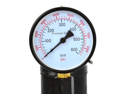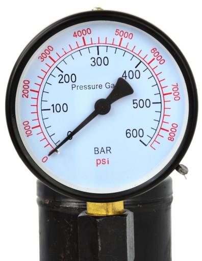 - manometr z podwójną skalą w jednostkach Bar oraz PSI: 0 - 600 bar / 0 - 8000 PSI